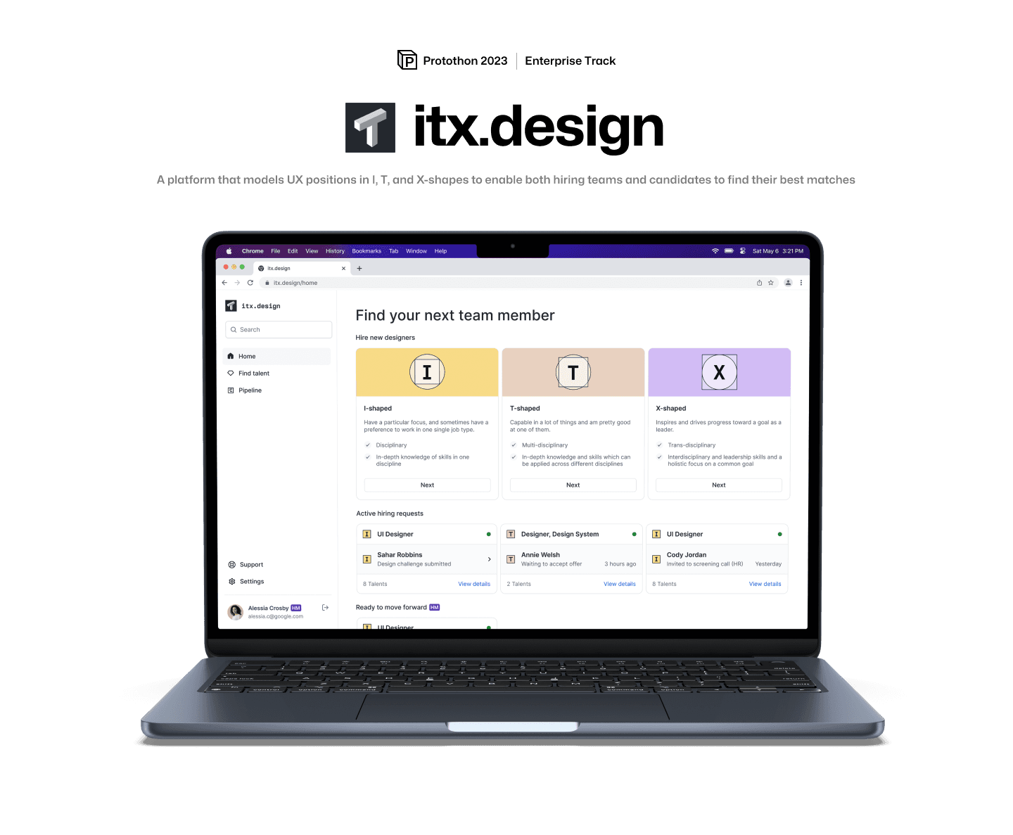 ITX.design is a platform that models UX design candidates in I, T, and X-shapes to enable both hiring teams and candidates to find their best matches.