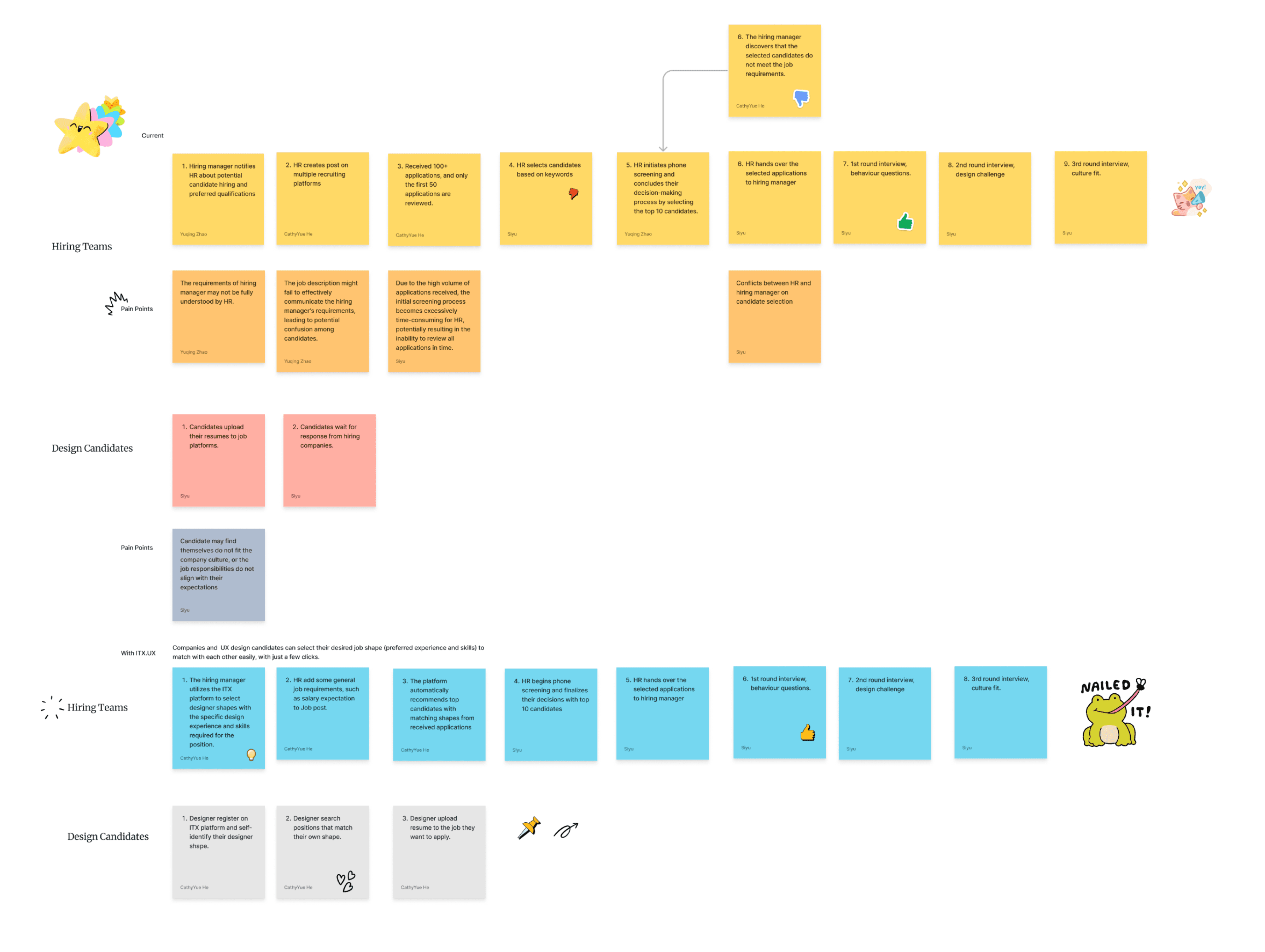 Ruki, the UX design candidate, select his design shapes. ITX platform will recommend job postings with matching design shapes to him.