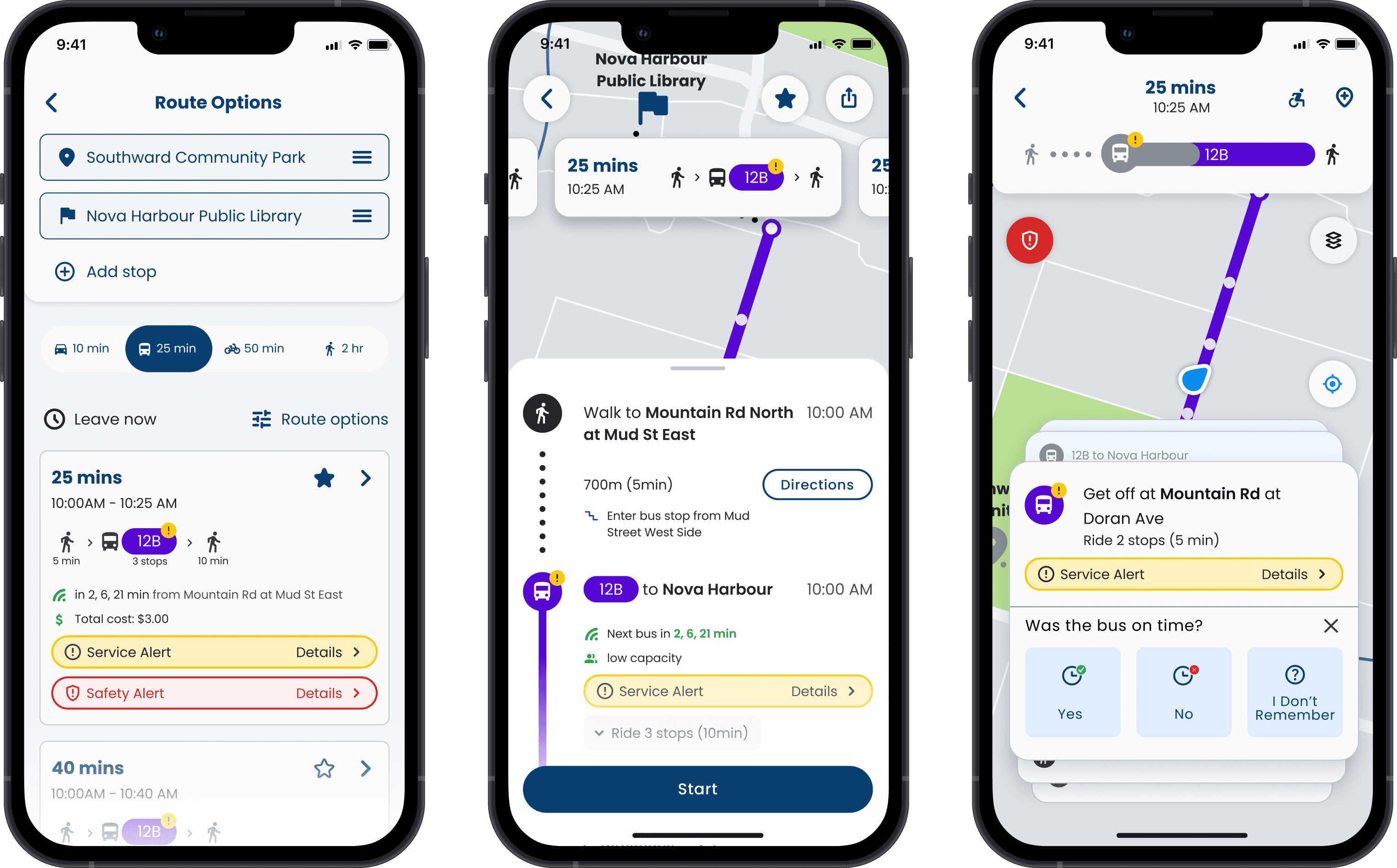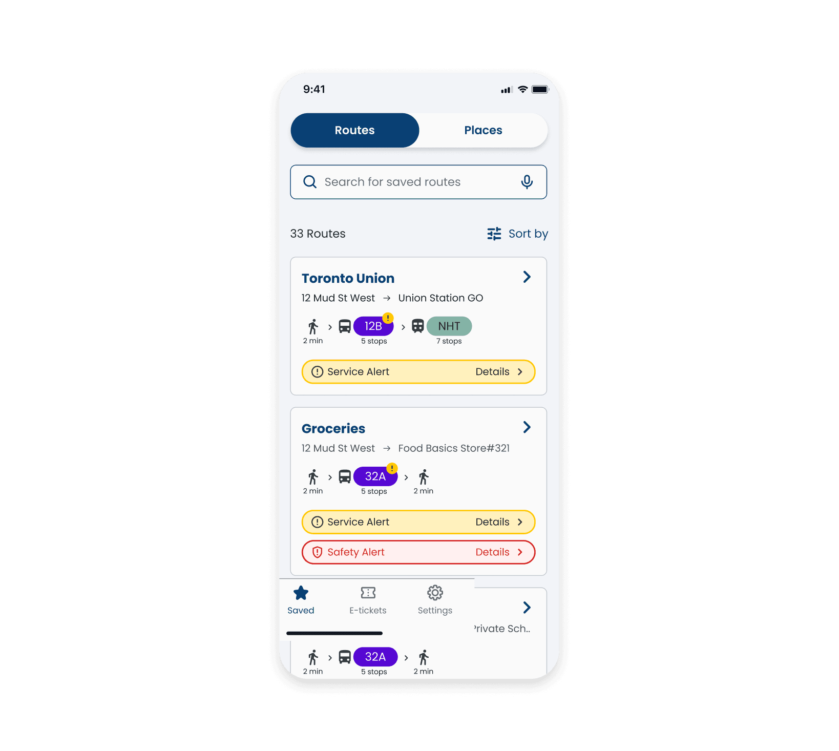 A transit app with step-by-step live navigation process, real-time updates, and saved routes for effortless daily journeys.